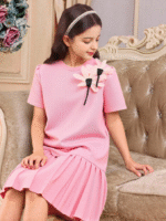 Glamorique Kids فستان فتاة صغيرة أنيق متناقض الألوان، ذو قصة بفتحات وحزام في شكل فراشة ثلاثي الأبعاد