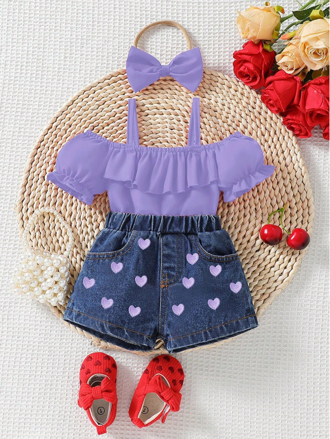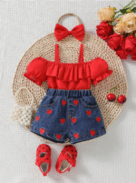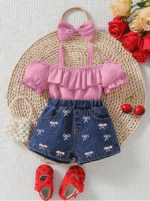 2 حُلّة بناتية رضيعة رياضية: جينز كاجوال + زينة فيونكة