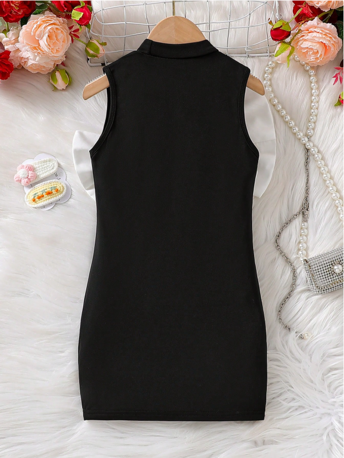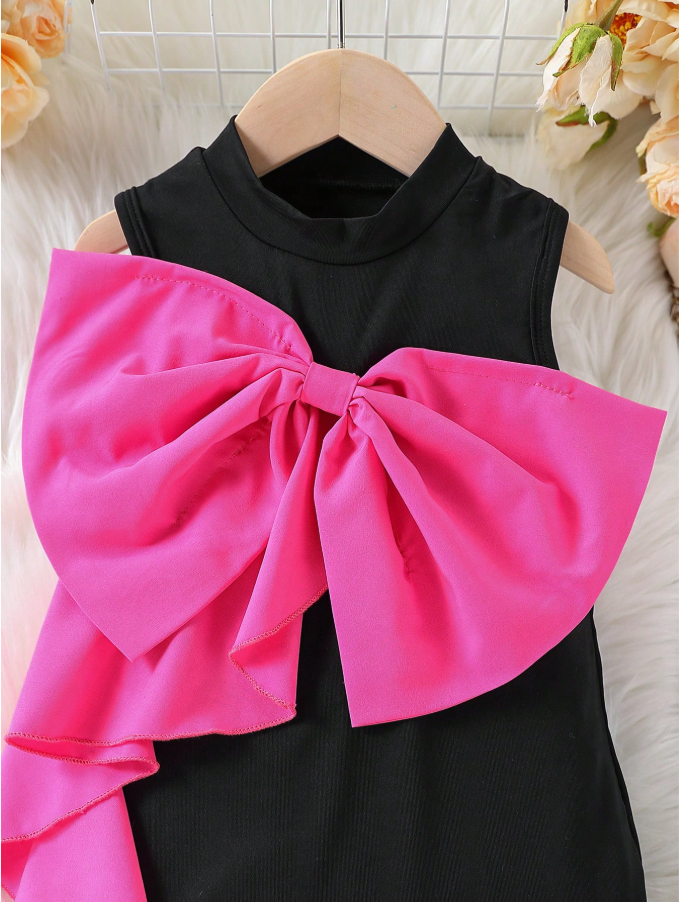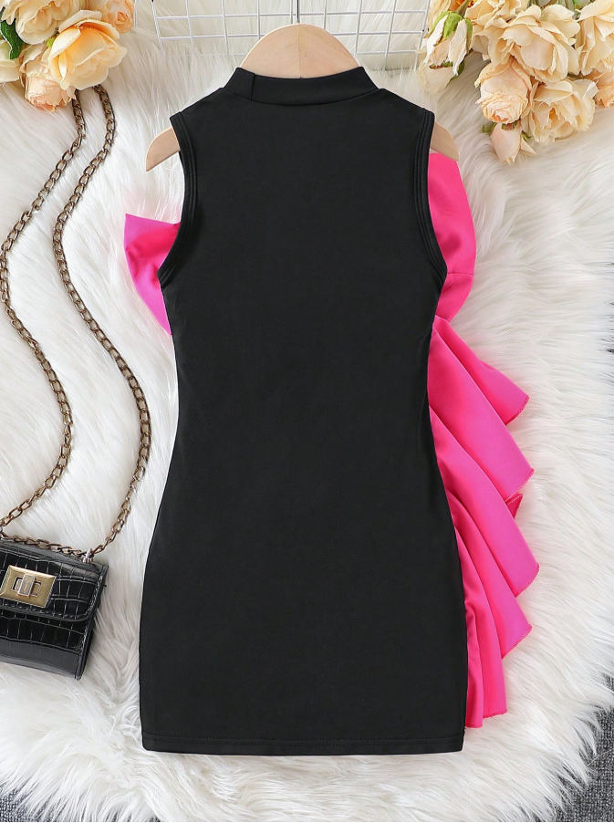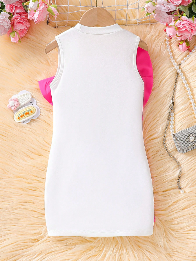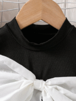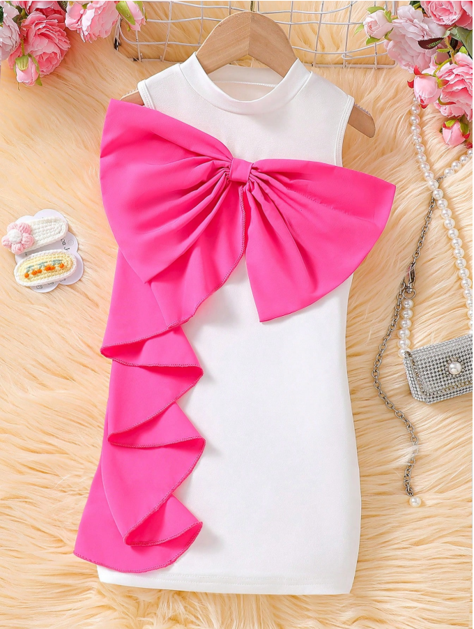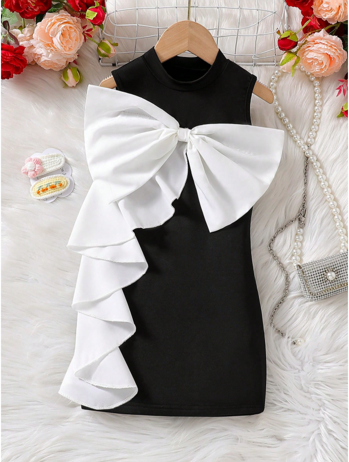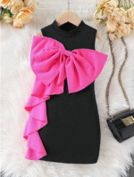 Glamorique Kids فستان فتاة صغيرة أنيق متناقض الألوان، ذو قصة بفتحات وحزام في شكل فراشة ثلاثي الأبعاد