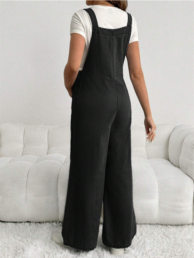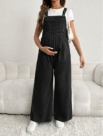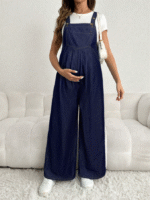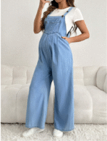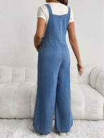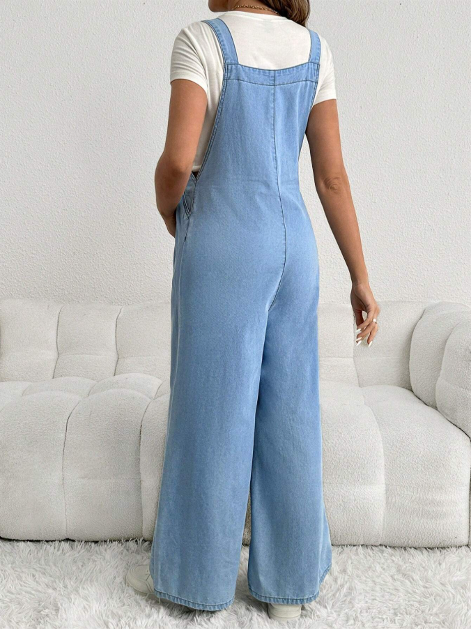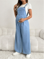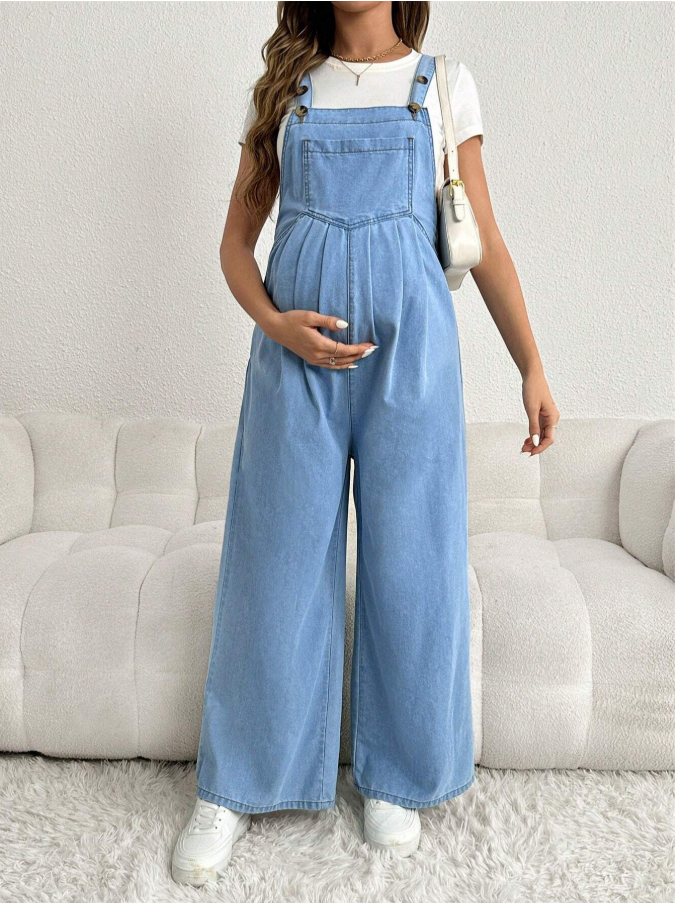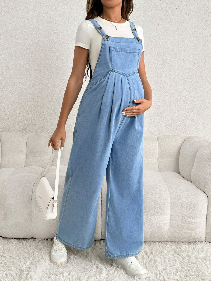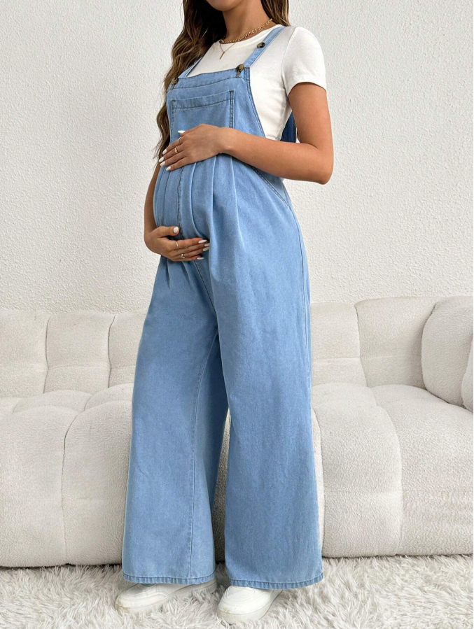 SHEIN سروال حمالة جينز قابل للتعديل للحوامل ذو أرجل واسعة، سائب عادي أزرق